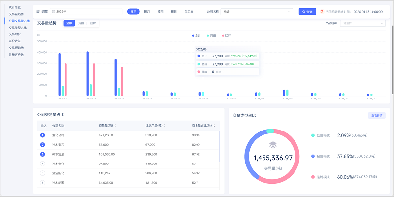 平臺運營提質(zhì)效,數(shù)字價值穩(wěn)釋放。大宗商品線上交易平臺全年運行平穩(wěn)有序,交易規(guī)模穩(wěn)步增長,交易品種和參與主體不斷豐富。通過競價、報價等多種交易模式協(xié)同運行,平臺在提升交易透明度、促進市場化運作和助力企業(yè)降本增效方面持續(xù)發(fā)揮積極作用,平臺運營成效和示范價值進一步顯現(xiàn)。