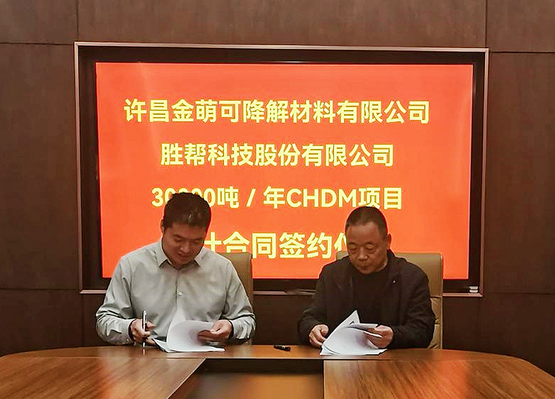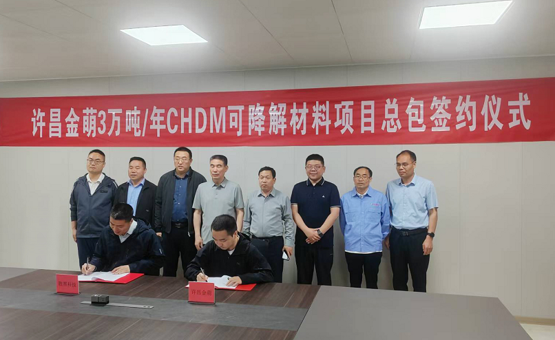 4月21日,許昌金萌可降解材料有限公司3萬噸/年CHDM項(xiàng)目工程總承包合同簽約儀式在河南許昌舉行。