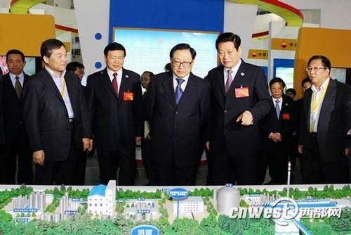 華建敏在陜西省委書記趙正永、省長婁勤儉以及陜煤化集團總經(jīng)理楊照乾等陪同下參觀集團公司展區(qū)