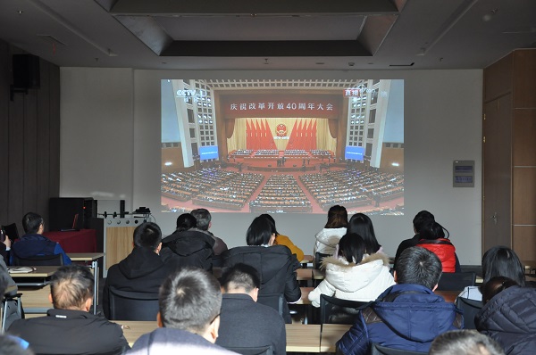 慶祝改革開放40周年大會(huì)于12月18日上午在北京人民大會(huì)堂隆重舉行。公司黨委組織全體黨員及中高層領(lǐng)導(dǎo)干部齊聚一樓培訓(xùn)室觀看大會(huì)直播?!捌饋?!不愿做奴隸的人們!……”,隨著振奮人心的國歌聲響起,大會(huì)拉開了序幕。中共中央總書記、國家主席、中央軍委主席習(xí)近平出席大會(huì)并發(fā)表重要講話。大家全神貫注、聚精會(huì)神、認(rèn)真聆聽,共同見證激動(dòng)人心的歷史時(shí)刻。